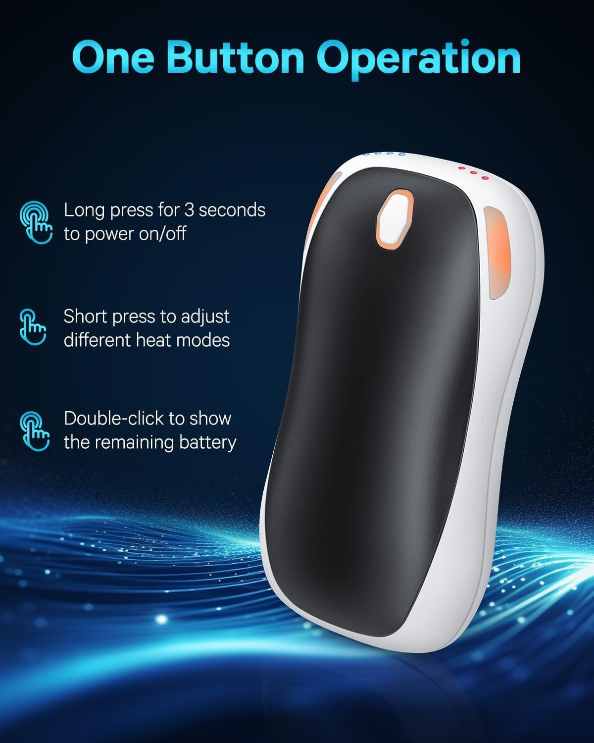Fast Charging & Durable Battery: Equipped with a high-capacity rechargeable battery, the hand warmers charge quickly and last longer. Fully recharge in just a few hours, and you'll be ready to go for the entire day.